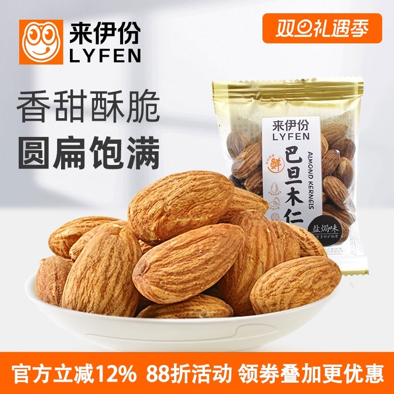 -> 来伊份巴旦木仁500g休闲零食坚果炒货盐焗干果杏仁扁桃仁小包散装