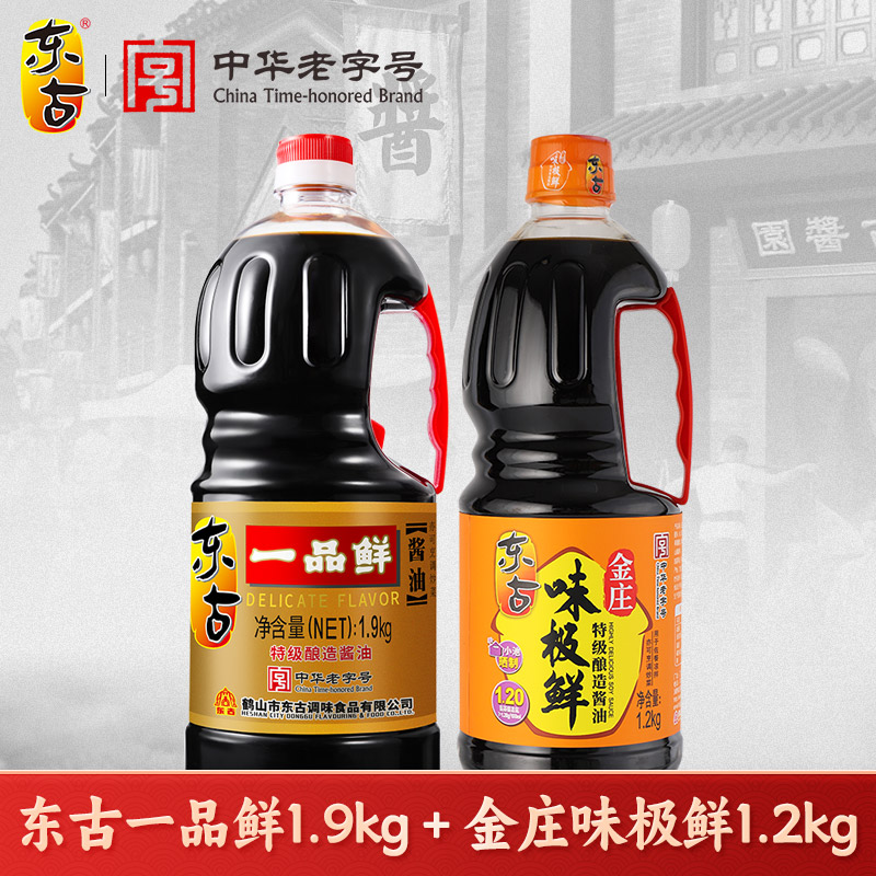 -> 东古一品鲜1.9kg炒菜点蘸金庄味极鲜蚝油黄豆酱家用组合酿造生抽