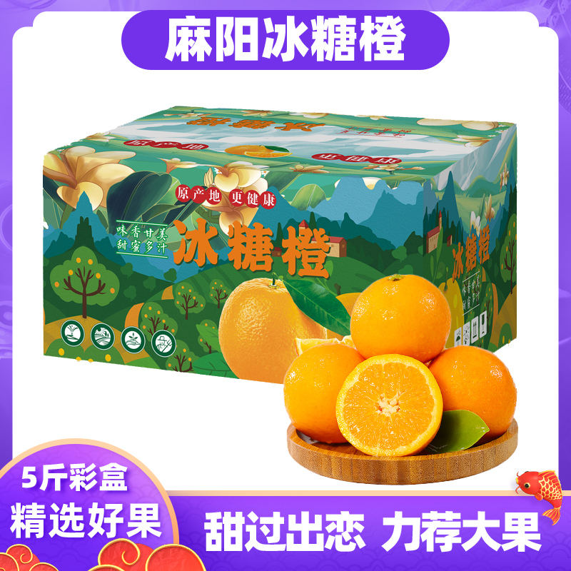 湖南麻阳冰糖橙彩盒5斤9斤当季礼盒新鲜水果手剥甜橙子批发脐包邮