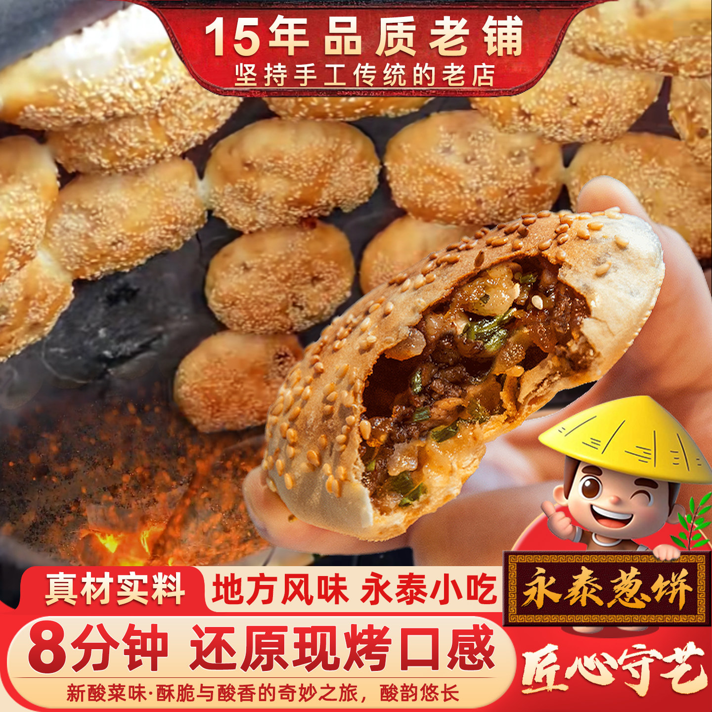 闽臻永泰葱饼烧饼10个传统小吃酸菜光饼永泰葱香肉饼手工咸香葱饼