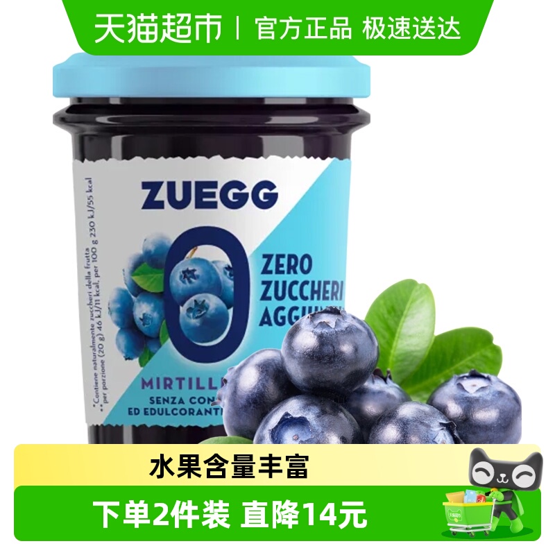 ZUEGG嘉丽进口无蔗糖蓝莓草莓酱低脂早餐酸奶果酱涂抹面包吐司酱