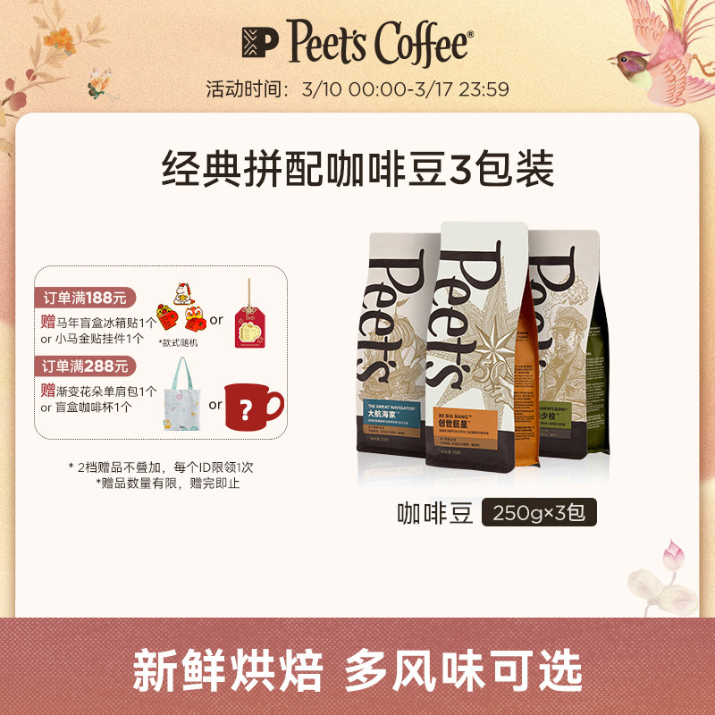 Peets皮爷经典拼配创世巨星大航海家阿拉比卡多风味组合咖啡豆3包