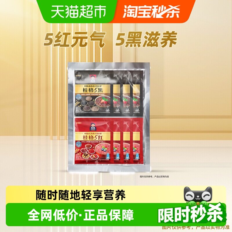 -> 桂格每日麦片5黑5红混合燕麦片黑芝麻黑米红豆红枣膳食纤维0糖