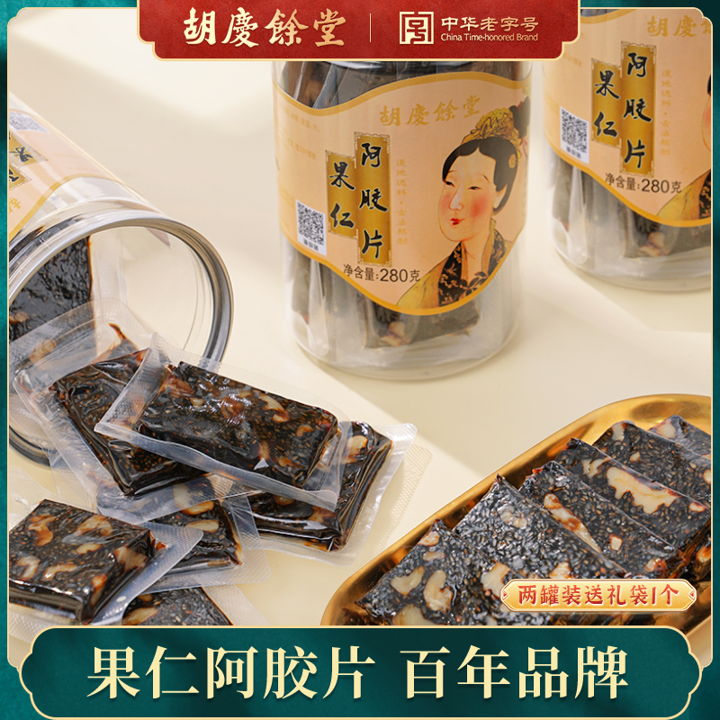 -> 胡庆余堂果仁阿胶片280克*2罐 阿胶片糕 即食阿胶片 携带方便