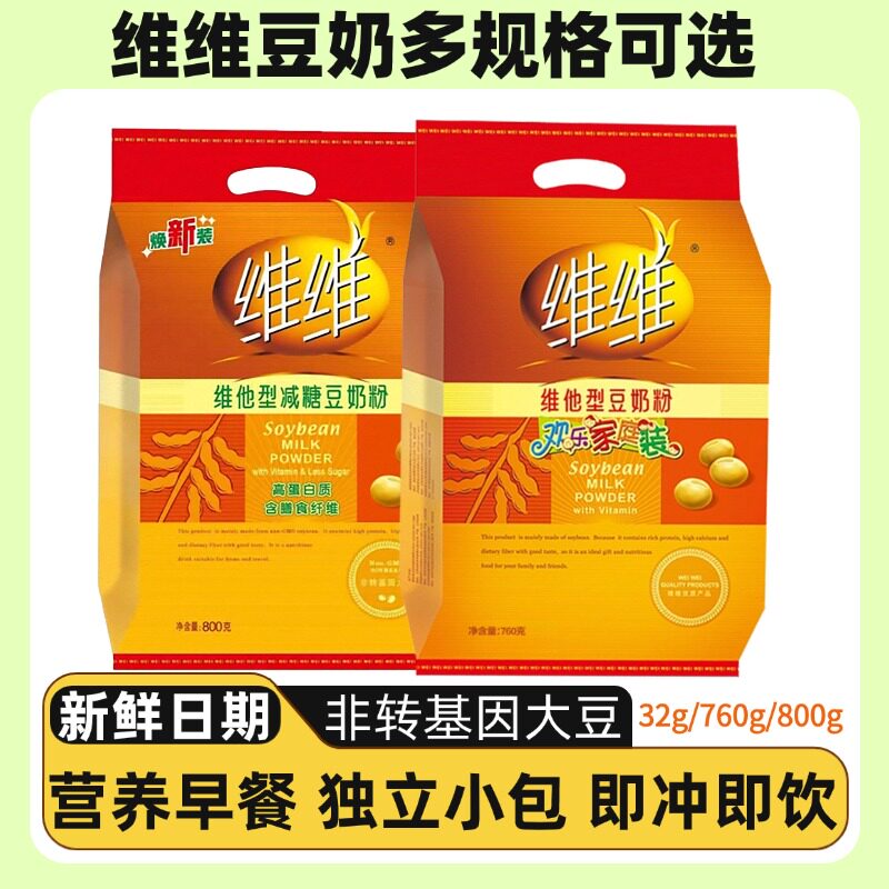 -> 维维豆奶粉32g/800g/760g多规格早餐学生中老年冲饮豆浆独立小包