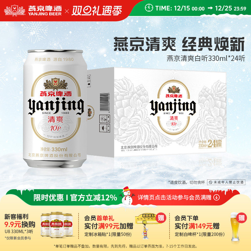 燕京啤酒 燕京10°P清爽特制白听330mL*24听罐装啤酒官方正品包邮