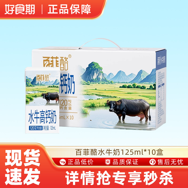 -> 百菲酪水牛奶125ml*10盒高钙儿童学生早餐奶整箱节日送礼