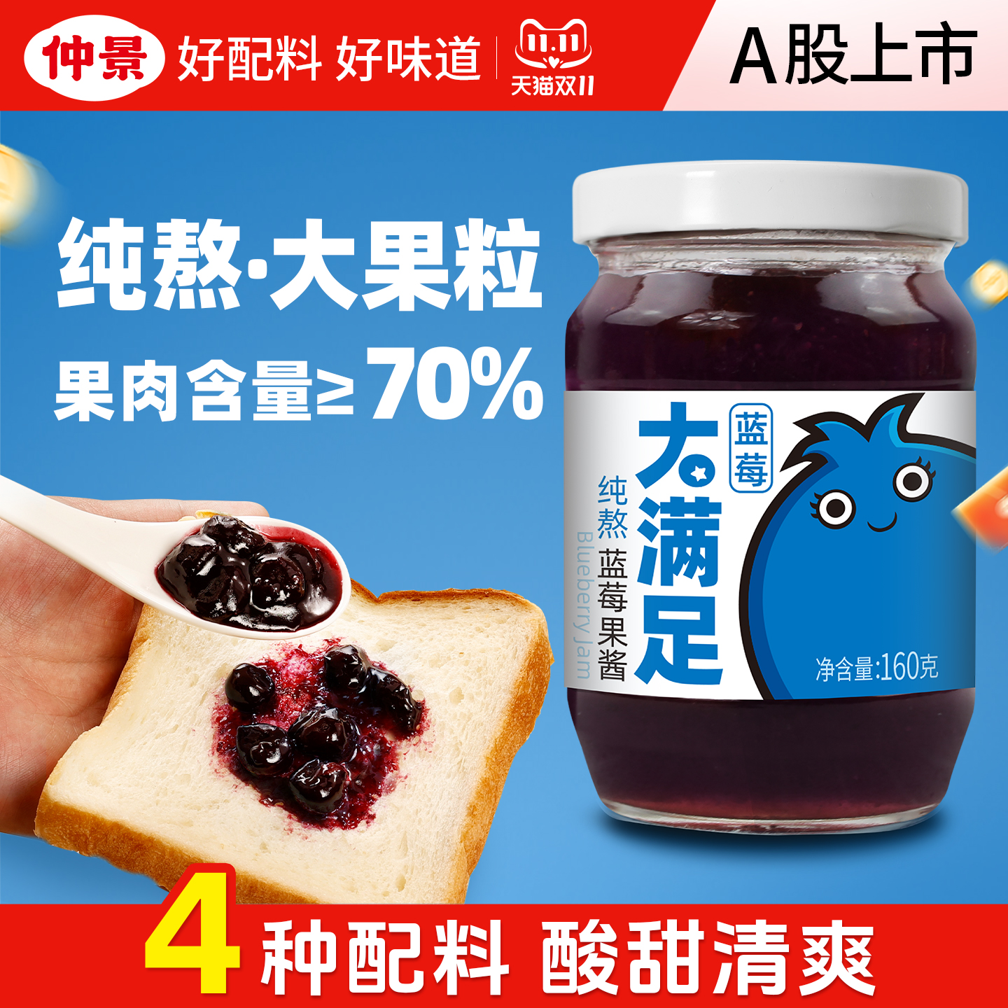 -> 仲景纯熬蓝莓果酱0添加果胶大果粒儿童早餐面包吐司烘焙酱料160g