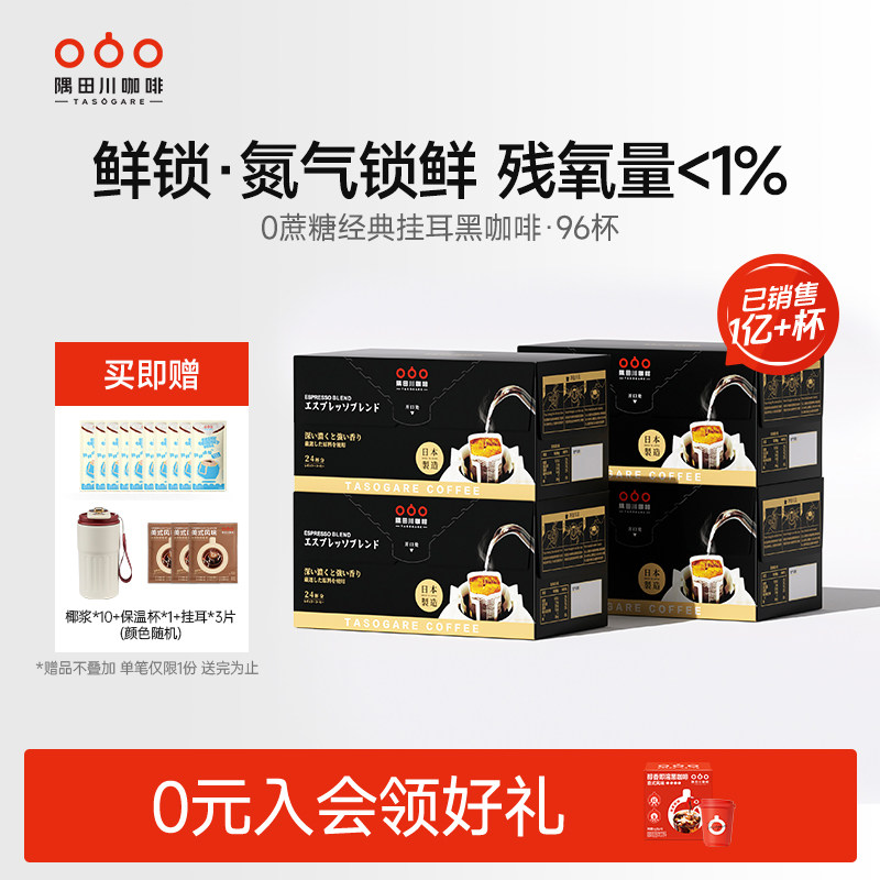 隅田川挂耳咖啡滤袋黑咖啡现磨手冲美式咖啡囤货装学生提神96杯
