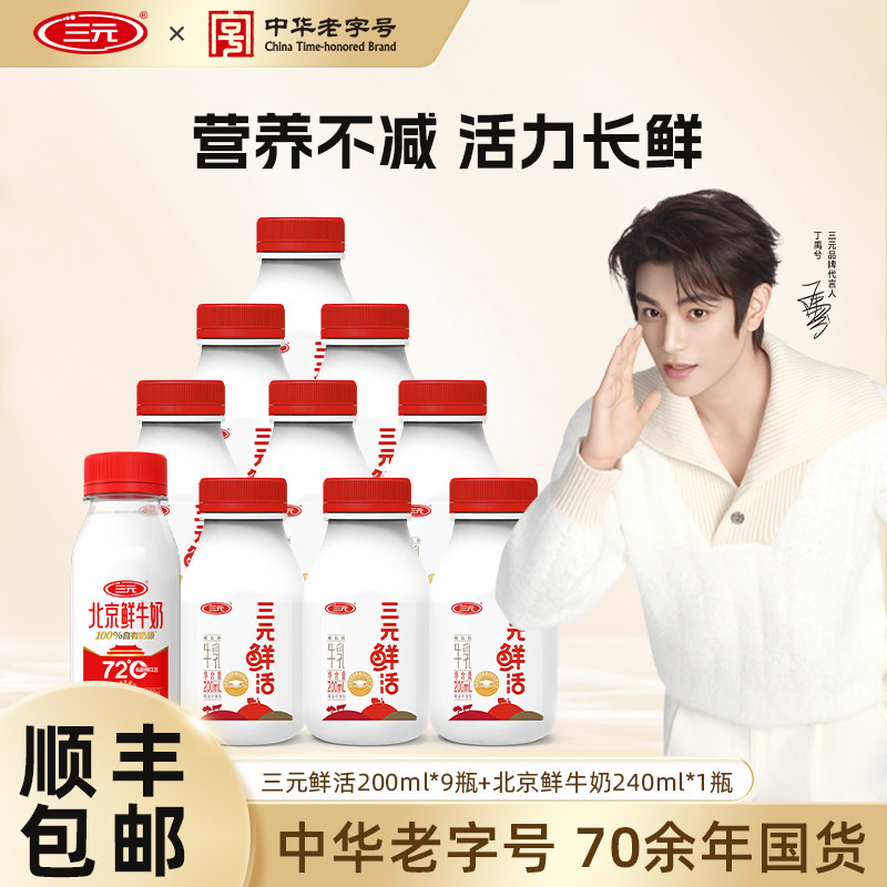 -> 三元鲜活200ml*9+72度北京鲜牛奶240ml*1低温冷藏早餐学生牛奶