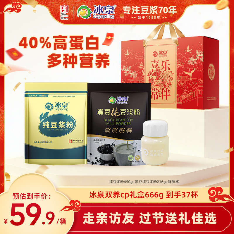 -> 冰泉纯豆浆粉540g黑豆纯豆浆粉无添加糖高蛋白营养早餐健身轻食