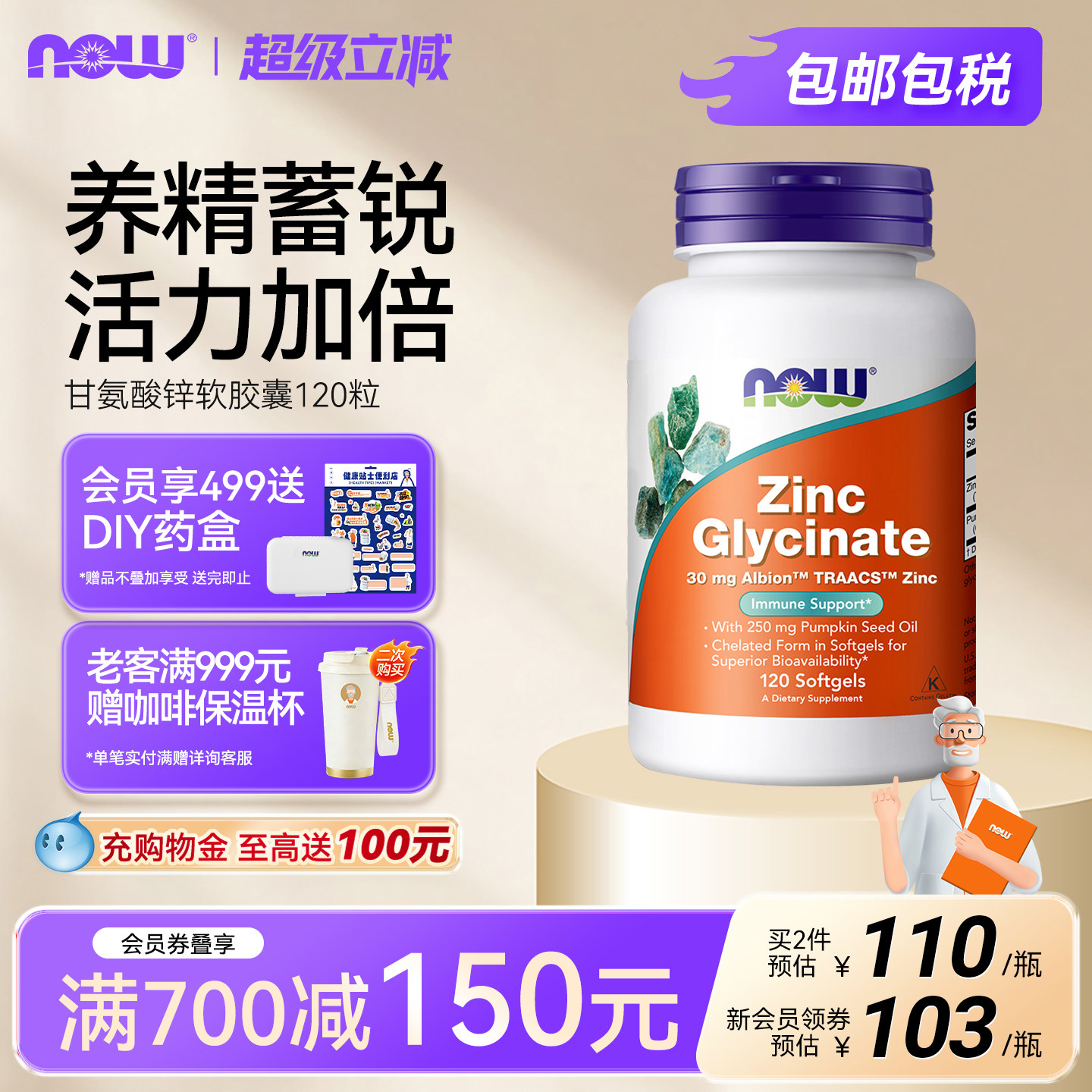 -> NOW甘氨酸锌glycinate螯合锌zinc活性男女士南瓜籽油养发诺奥