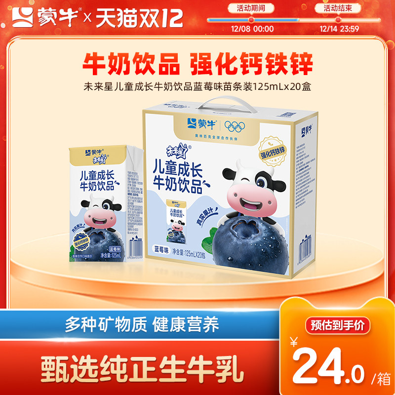-> 【热卖】蒙牛未来星儿童成长牛奶饮品蓝莓味苗条装125ml×20盒