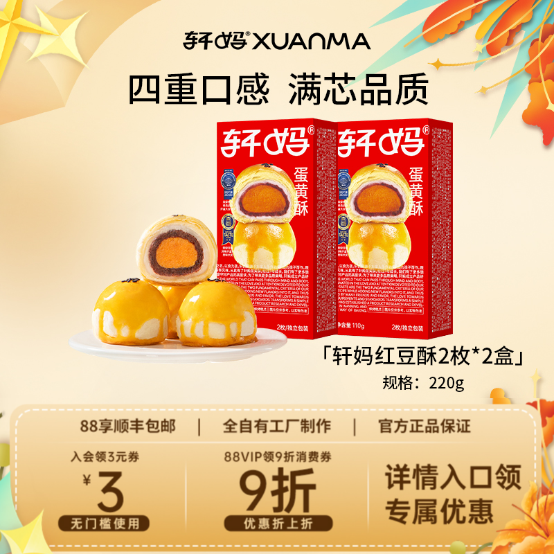 【百补】轩妈经典红豆蛋黄酥110g*2盒雪媚娘糕点点心网红零食早餐