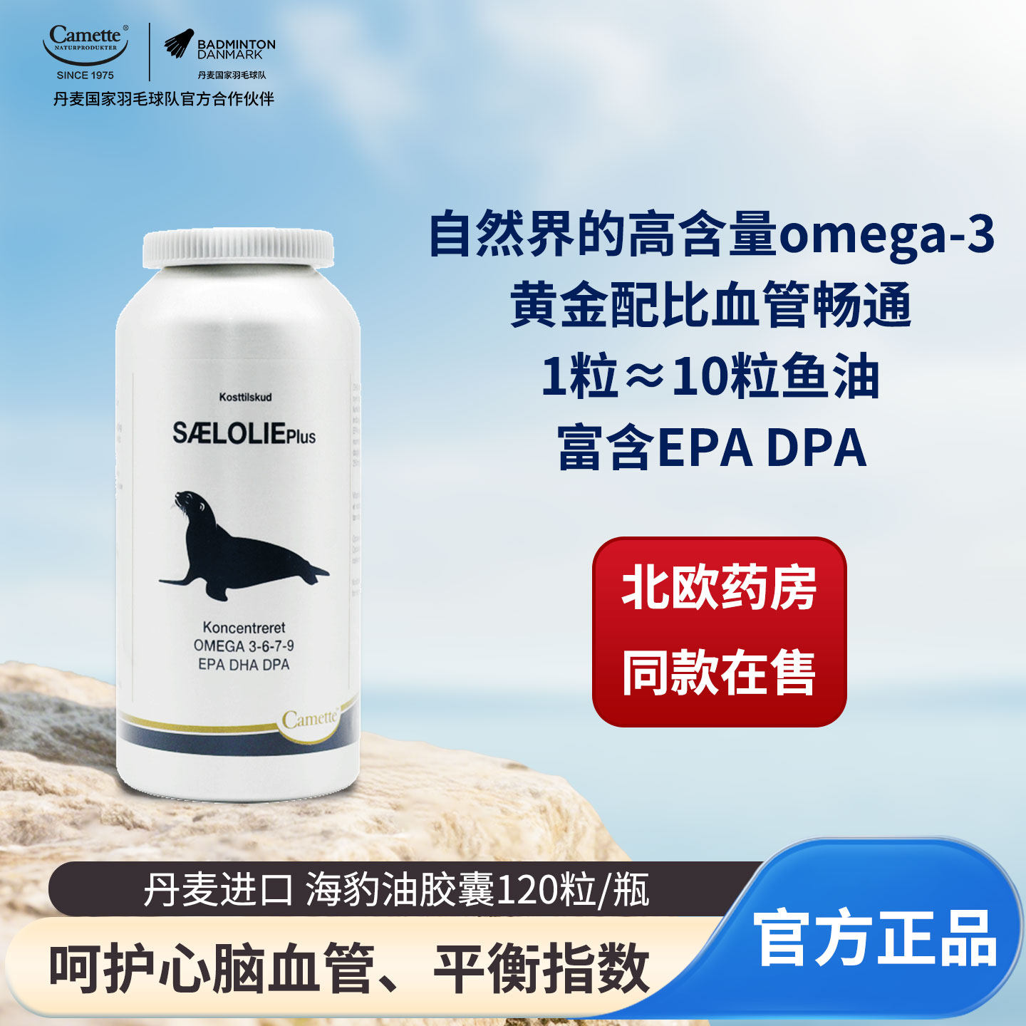 camette凯麦特丹麦浓缩海豹油omega3中老年人鱼油DHA软胶囊脂肪酸