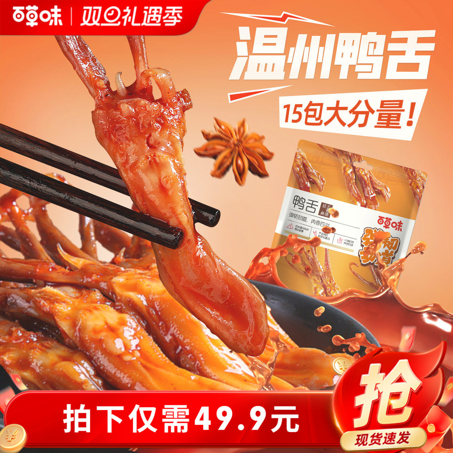 -> 百草味酱香鸭舌头60g经典五香味鸭肉卤味零食