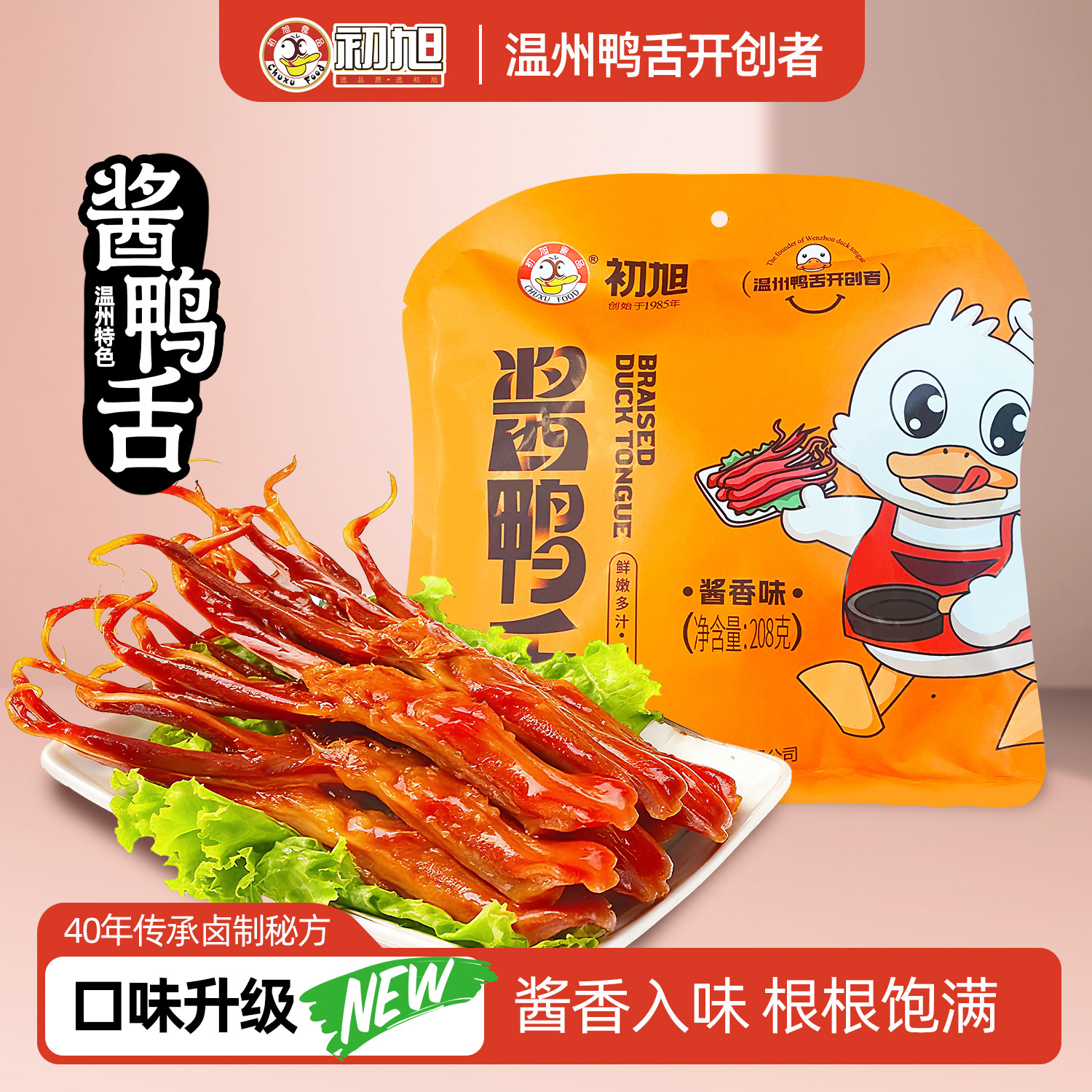 -> 初旭酱香鸭舌208g 温州特产卤味解馋休闲零食辣味鸭货独立小包装