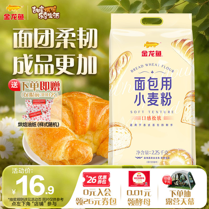 【甄选小麦】金龙鱼面包粉2.25kg高筋面粉面包用披萨烘焙专用家用
