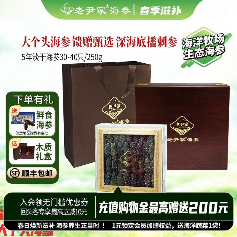 -> 老尹家5年淡干海参深海底播刺参春季滋补礼盒250g 30-40头