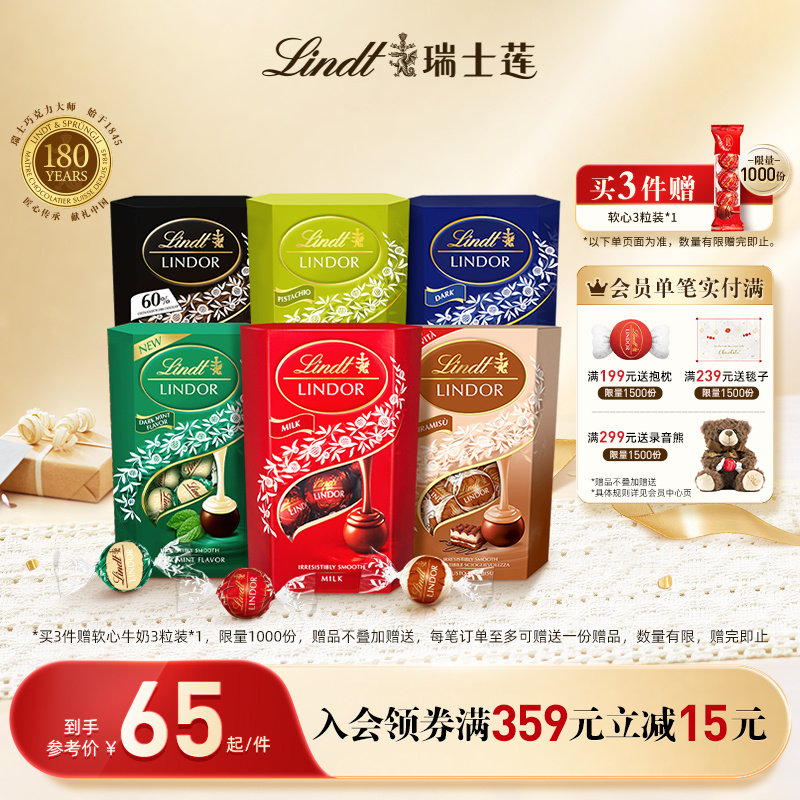 Lindt/瑞士莲官方正品软心精选牛奶黑巧克力200g年货休闲零食送礼