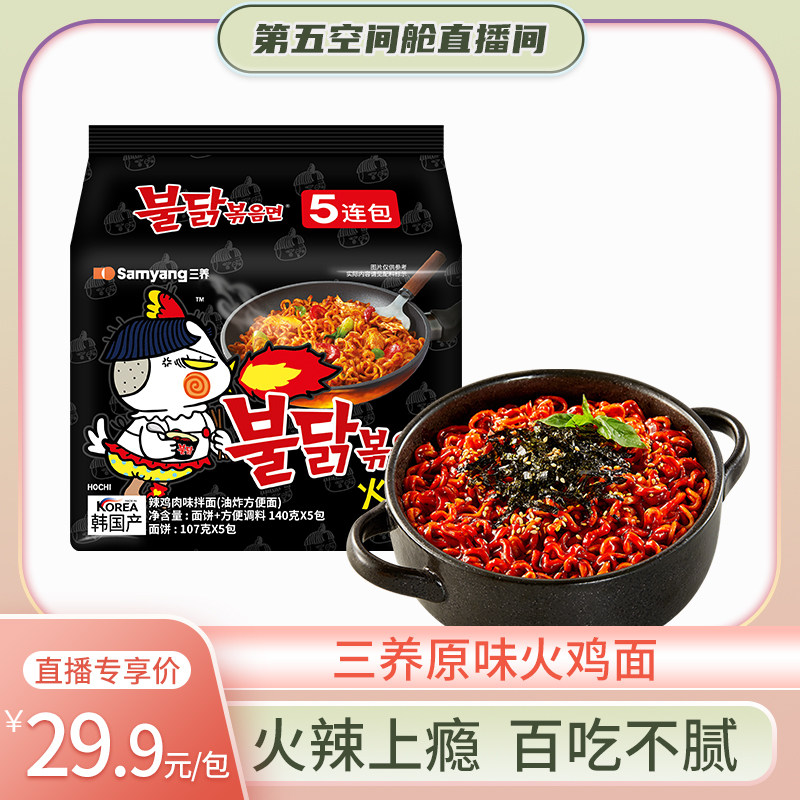 -> 【自营】【第五空间舱】韩国进口三养正宗火鸡面五连包拌面夜宵