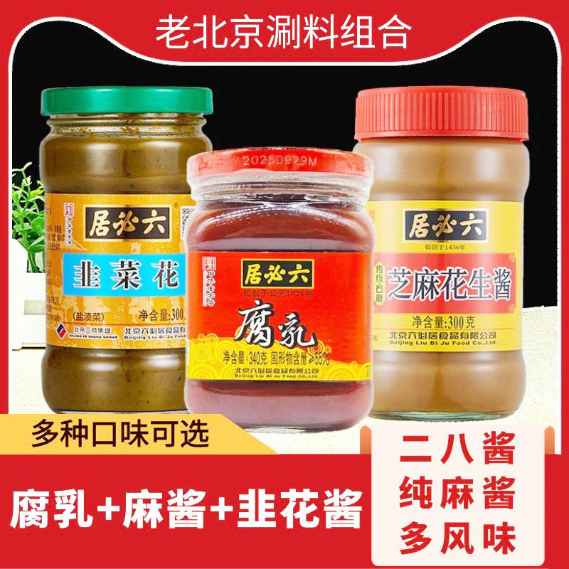 老北京六必居涮羊肉火锅调料组合装大块腐乳韭花酱芝麻酱火锅蘸料