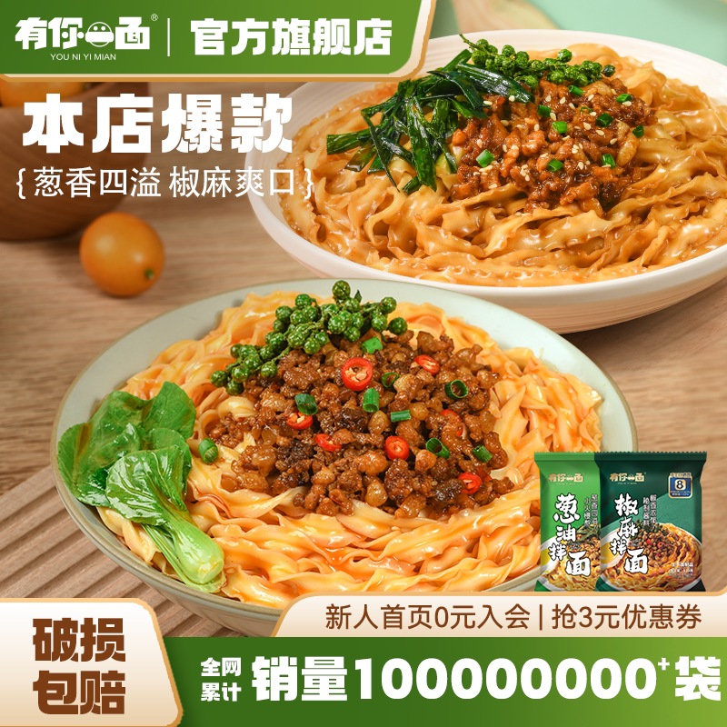 -> 有你一面手工日晒面葱油椒麻拌面 懒人方便速食自煮面刀削面4连包