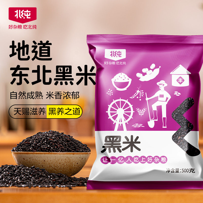 -> 北纯黑米500g 五谷杂粮东北粗粮黑米黑糯米大米脂减香米黑米新米