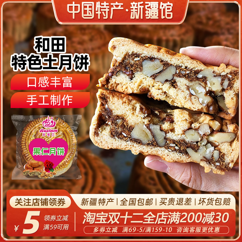 【新疆特产】如紫兰和田土月饼核桃果仁手工老月饼礼盒送礼旗舰店