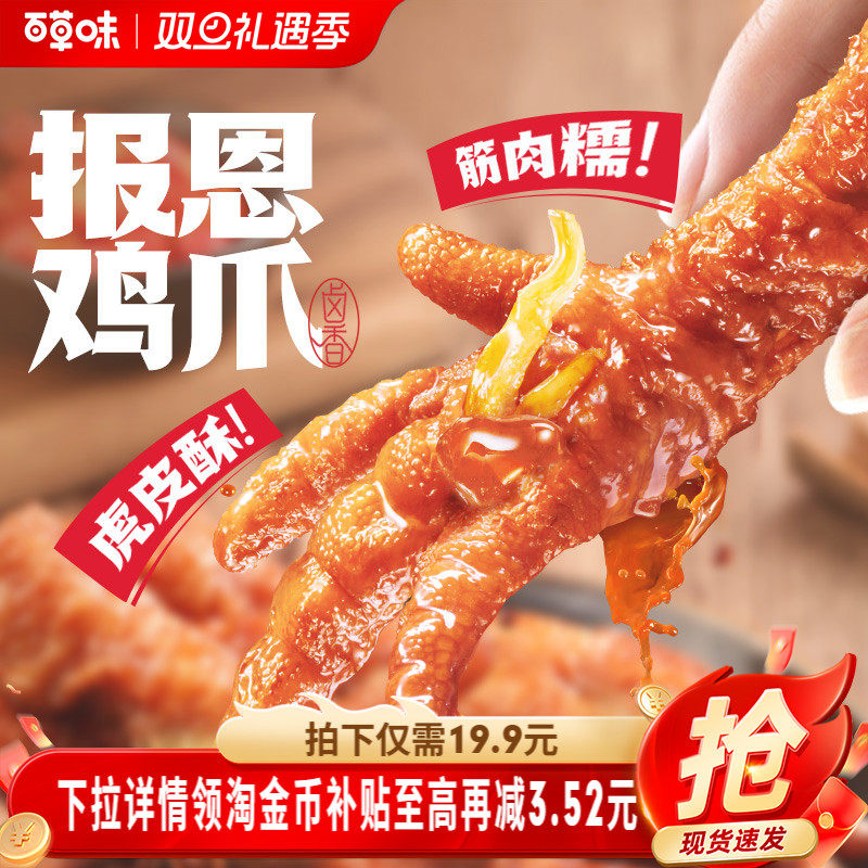 -> 百草味虎皮凤爪170g卤味鸡爪鸡肉休闲熟食肉类零食嗦粉搭档