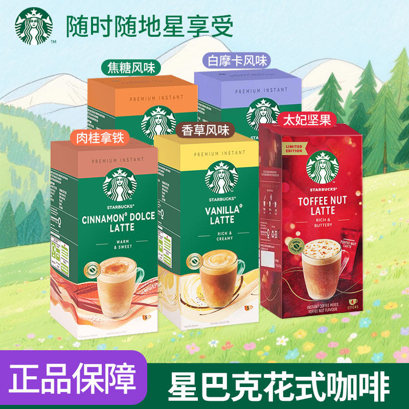 -> 星巴克精品速溶咖啡拿铁焦糖卡布奇诺香草花式奶咖英国进口正品