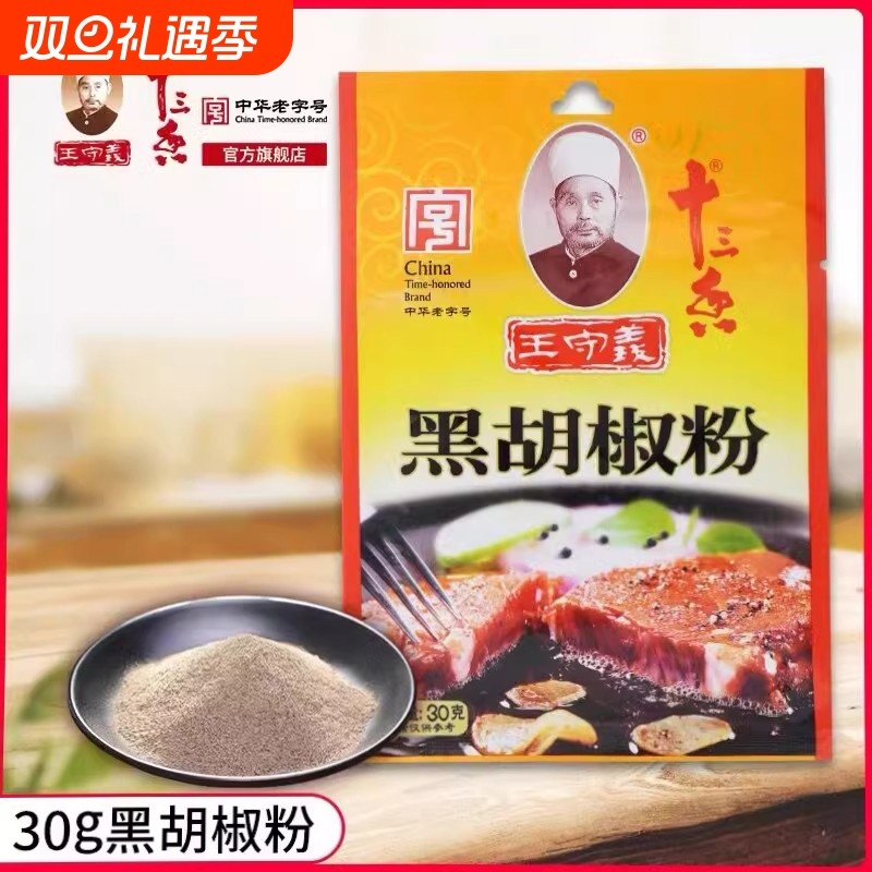 -> 王守义十三香黑胡椒粉30g家用小包烧烤龙虾牛排调料粉料批发商用