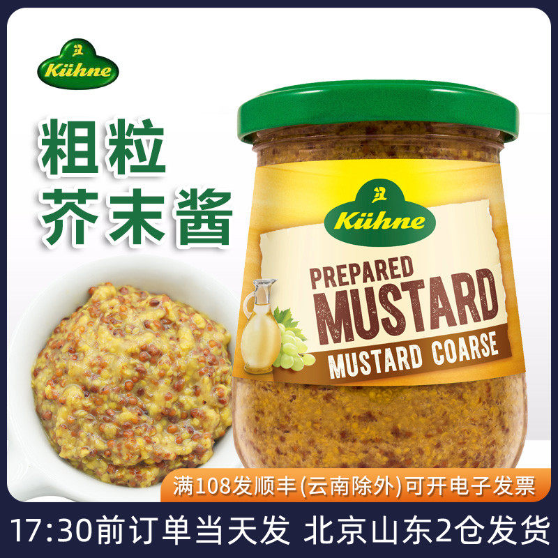 -> 冠利粗粒芥末籽酱250g德国进口法式西餐沙拉海鲜寿司黄整粒蘸酱