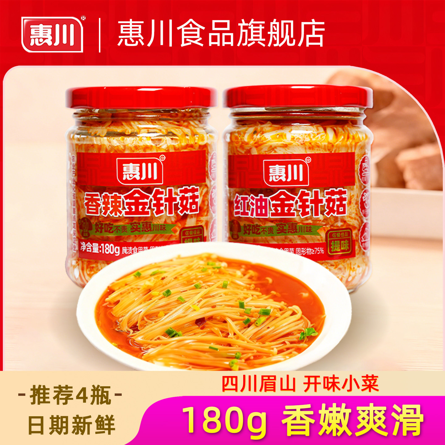惠川红油金针菇香辣金针菇即食下饭菜开味菜四川特产榨菜泡菜瓶装