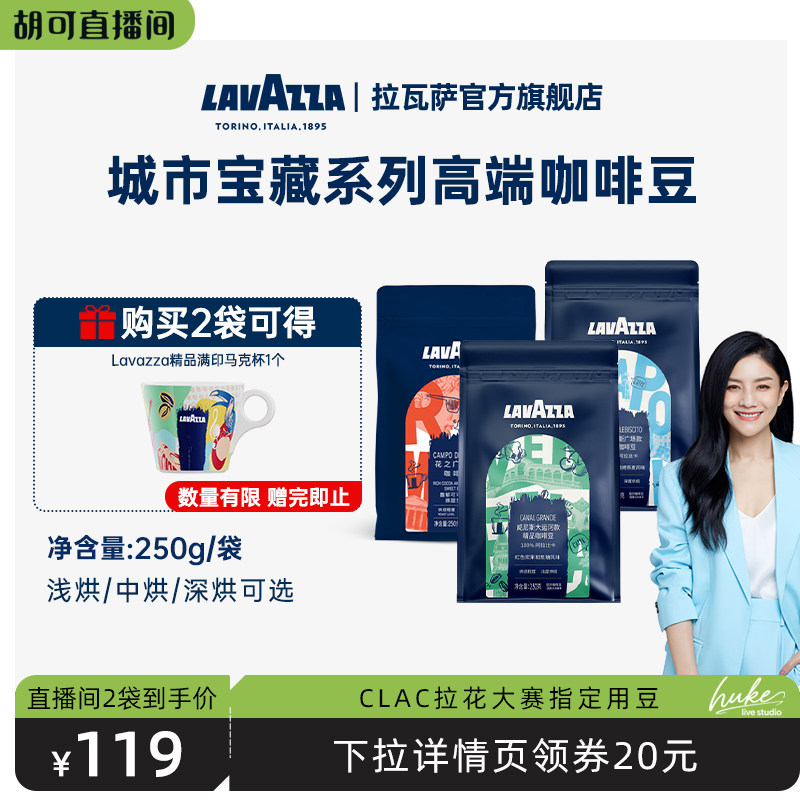 -> 【胡可直播】LAVAZZA拉瓦萨意式甄选咖啡豆250g油脂丰富门店同款