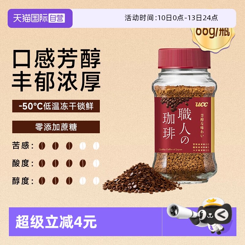 日本UCC悠诗诗进口速溶咖啡粉黑咖啡提神无蔗糖金牌红瓶罐装瓶装