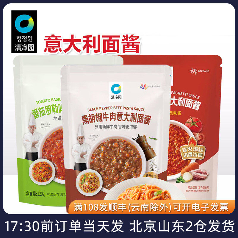 -> 清净园经典肉酱意大利面酱黑胡椒牛肉番茄罗勒鸡肉意面酱小包装