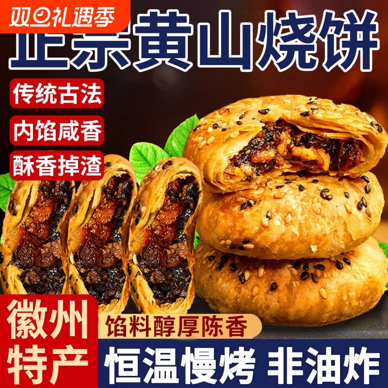 -> 正宗安徽特产黄山烧饼梅干菜扣肉酥饼早餐面包饼干休闲零食小吃