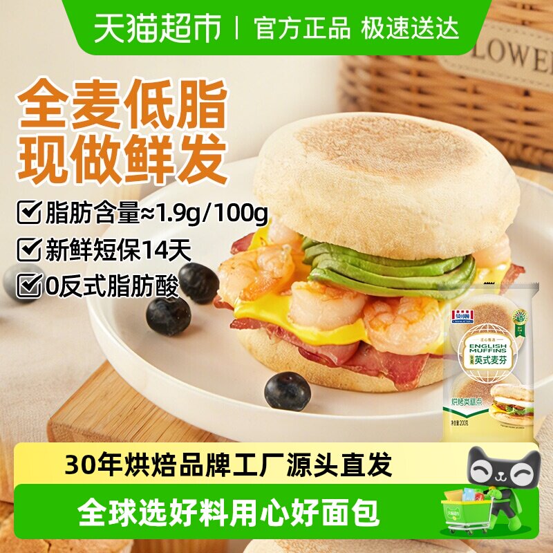 -> 曼可顿厚皮橙同款英式麦芬全麦低脂健身汉堡胚面包胚早餐代餐