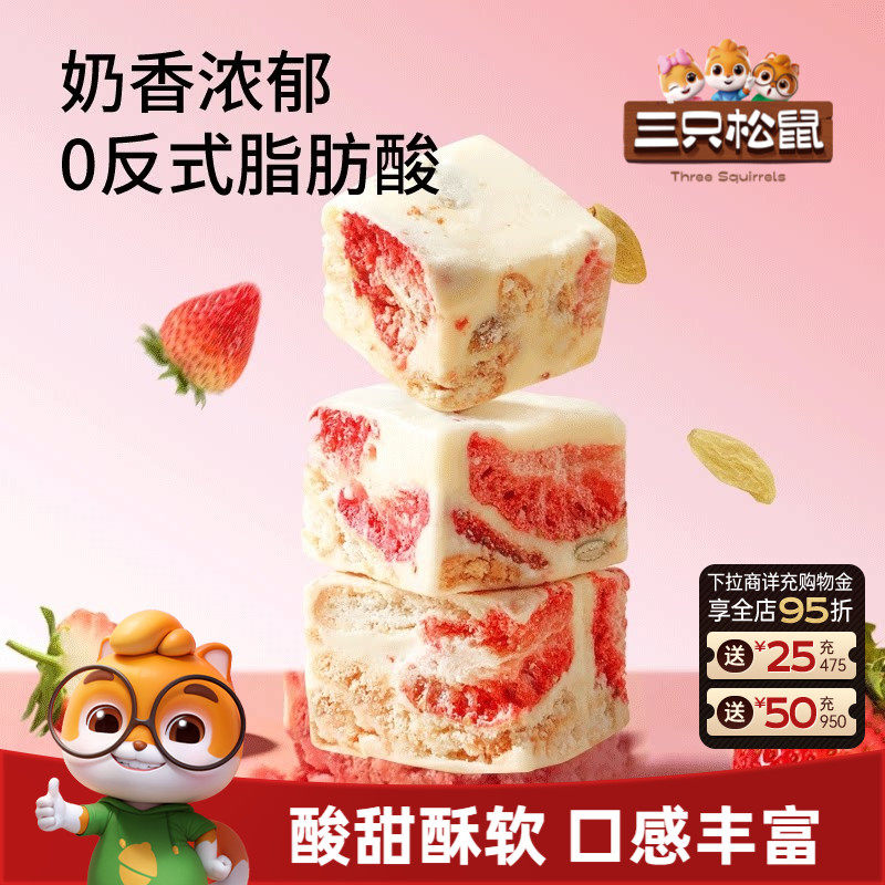 三只松鼠_冻干草莓羊奶芙饼干雪花酥特产零食糕点心节日伴手礼赠