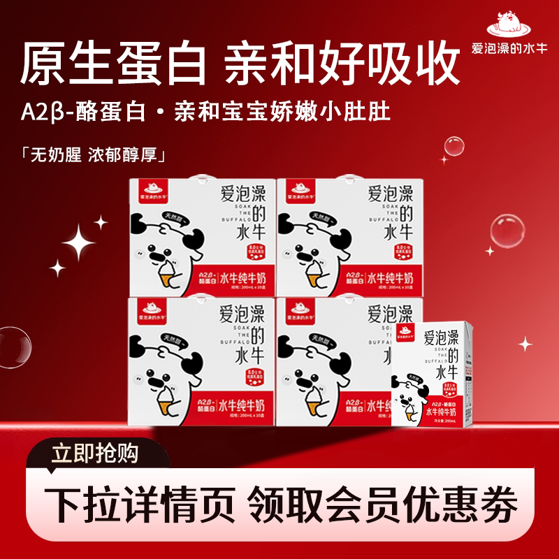 -> 爱泡澡的水牛纯牛奶200ml*10盒宝宝儿童水牛奶营养高钙牛奶广西