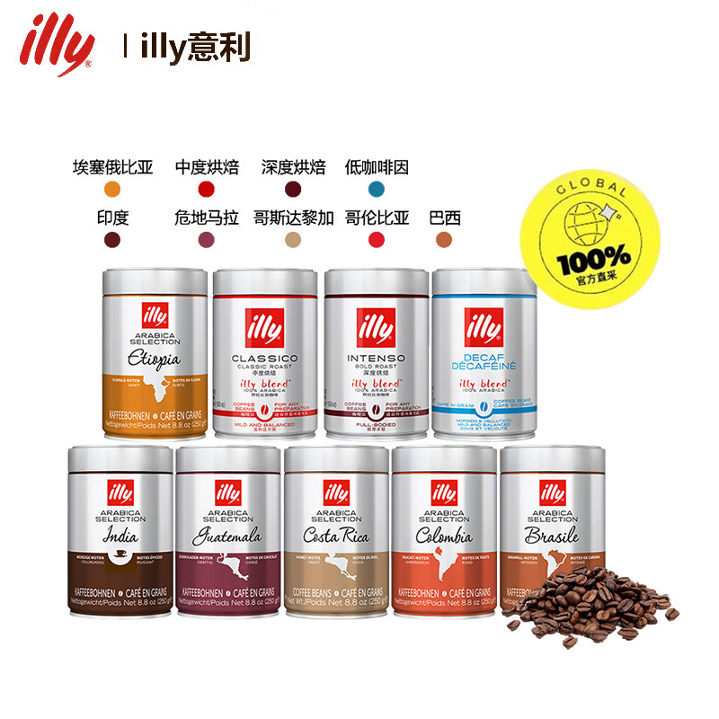 -> illy意利咖啡豆意大利进口咖啡豆咖啡粉美式意式黑咖啡中深烘焙
