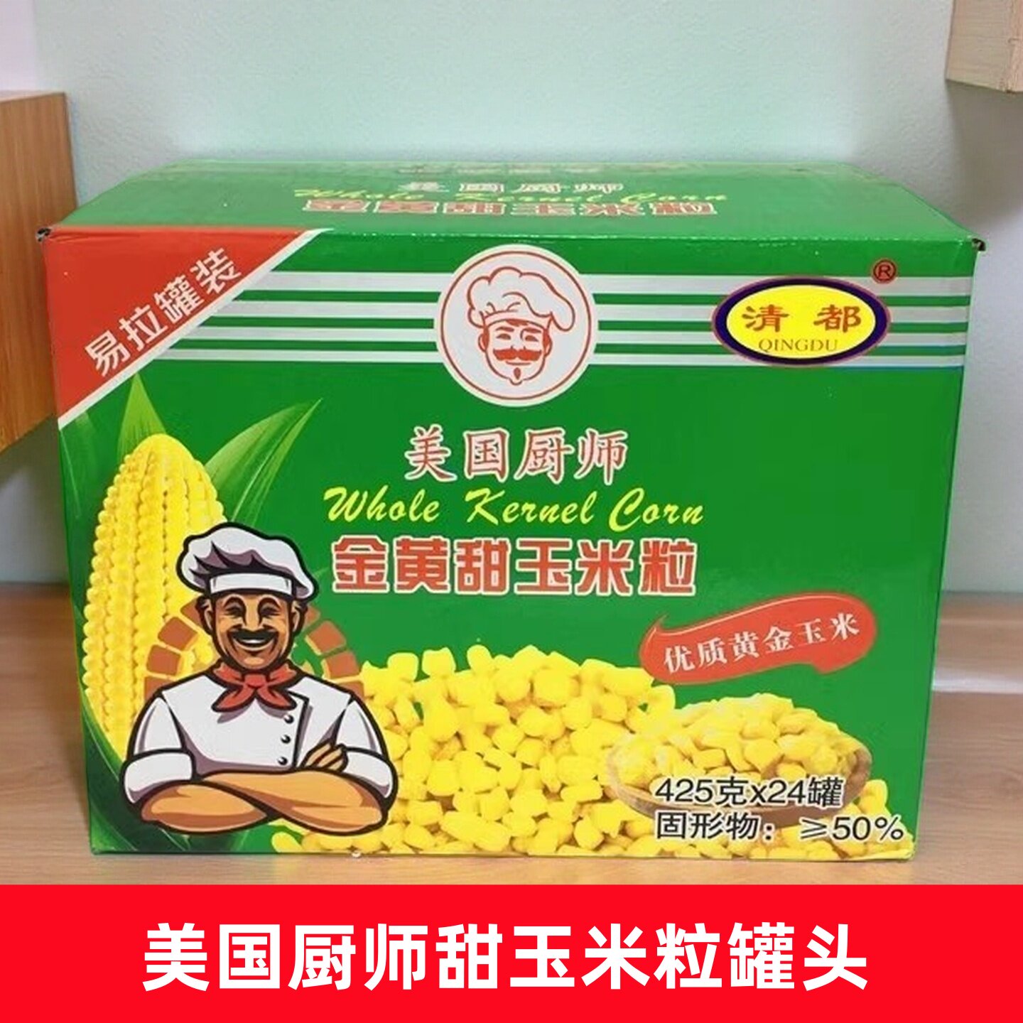 -> 清都美国厨师甜玉米粒整箱425gX24 披萨沙拉甜品原料玉米罐头鱼饵