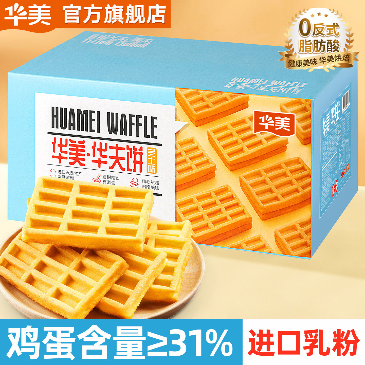 -> 华美华夫饼原味香草芝士网红蛋糕营养早餐下午茶食品零食1000g