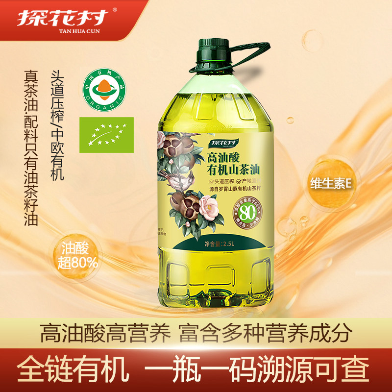 -> 探花村纯正高油酸有机山茶油2.5L江西正宗低温压榨茶籽食用油正品