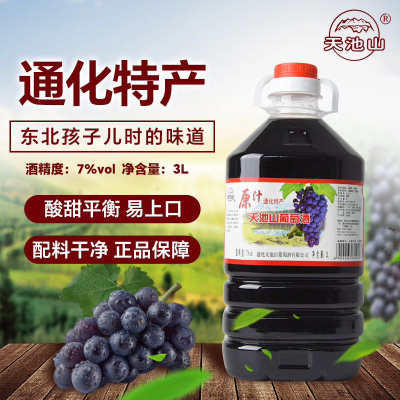 -> 东北通化天池山葡萄酒吉林原汁红酒大桶5斤微醺甜型果味晚安酒7°