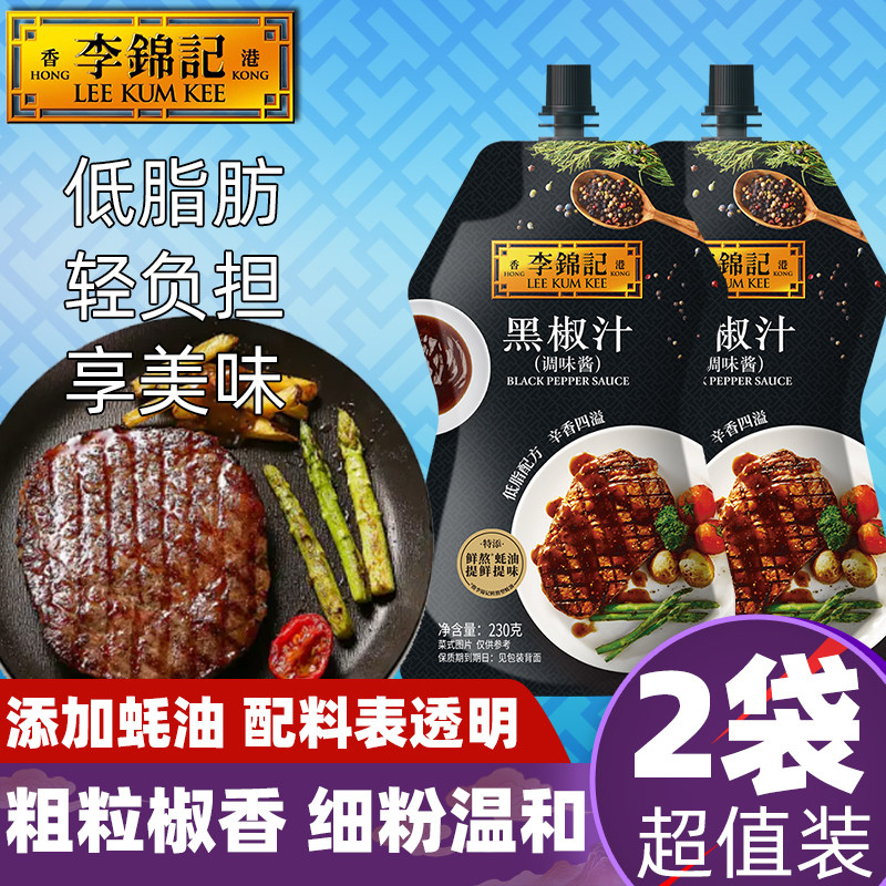 -> 李锦记黑椒汁230g袋装0低脂健身牛排意面腌料胡添加酱烤肉披萨羊
