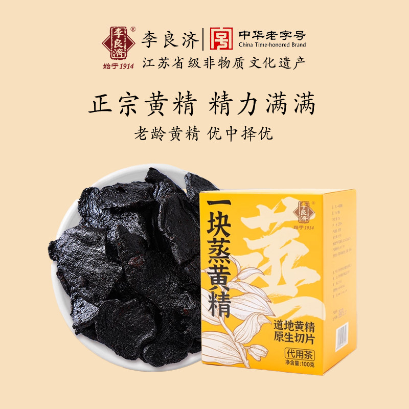-> 李良济一块蒸黄精100g手工挑选正宗即食蒸黄精多晒软糯旗舰店九制