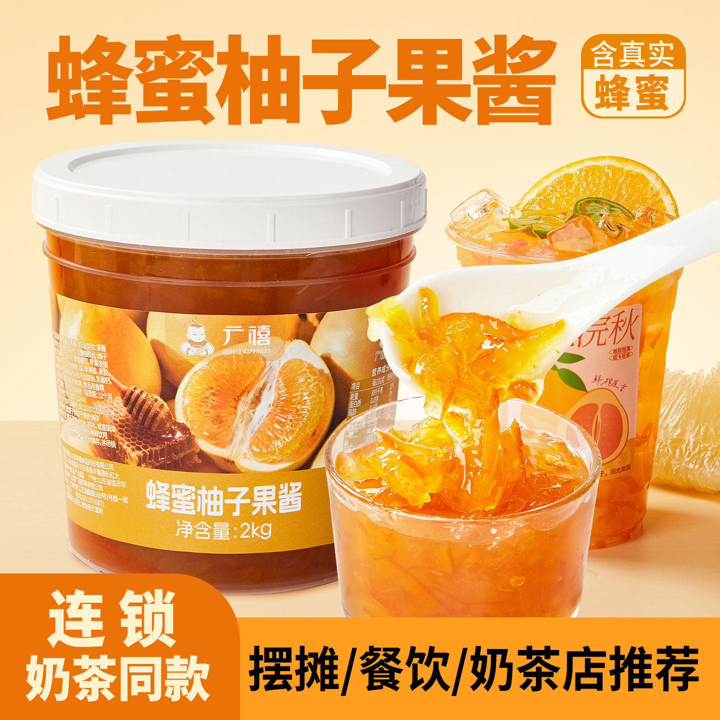 广禧蜂蜜柚子果酱2kg 芒果蓝莓含果肉果粒酱奶茶店专用原料商用