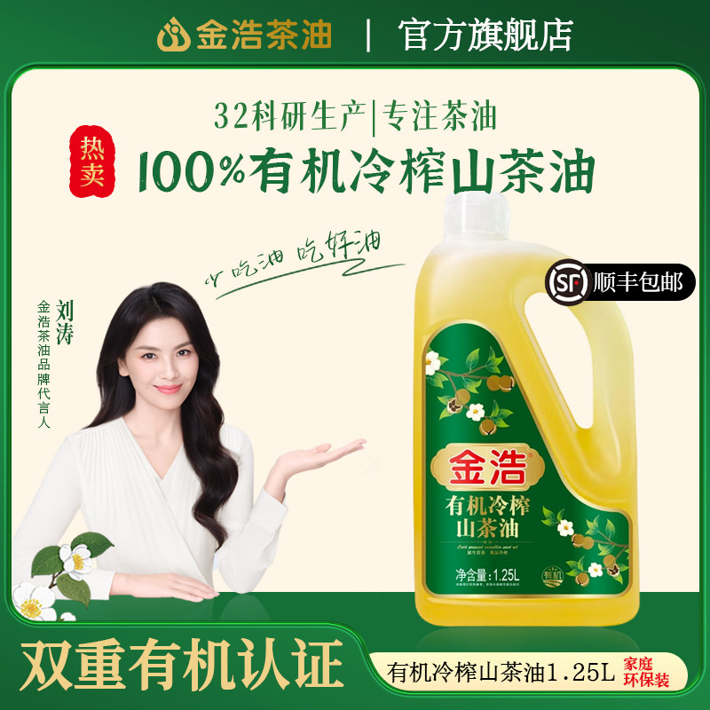 -> 【日期鲜】金浩有机低温冷榨山茶油纯正油茶籽油健康食用油1.25L